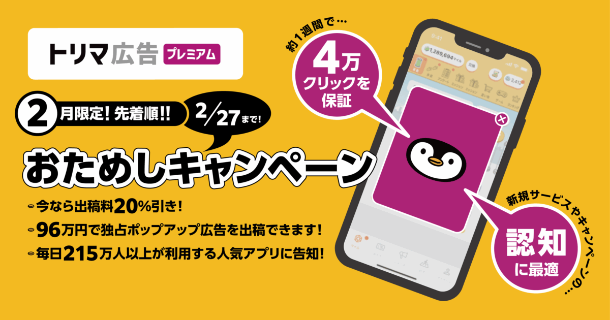 【2月お申込限定】トリマ広告プレミアム おためしキャンペーン